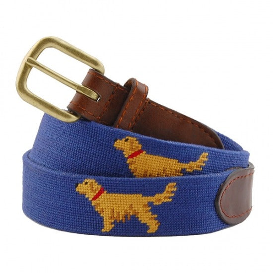 Smathers & Branson Golden Retriever Needlepoint Belt In Navy